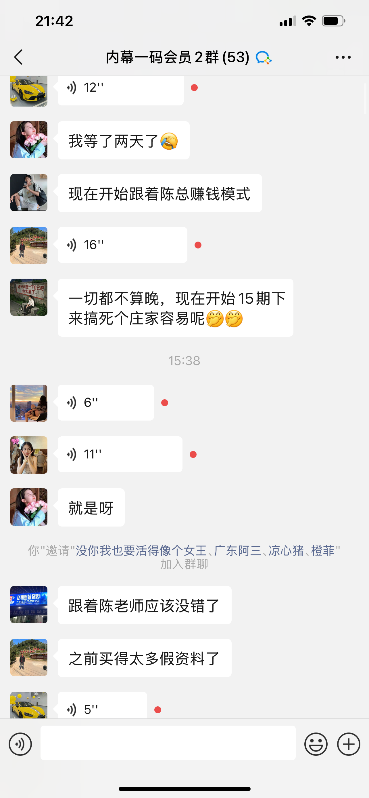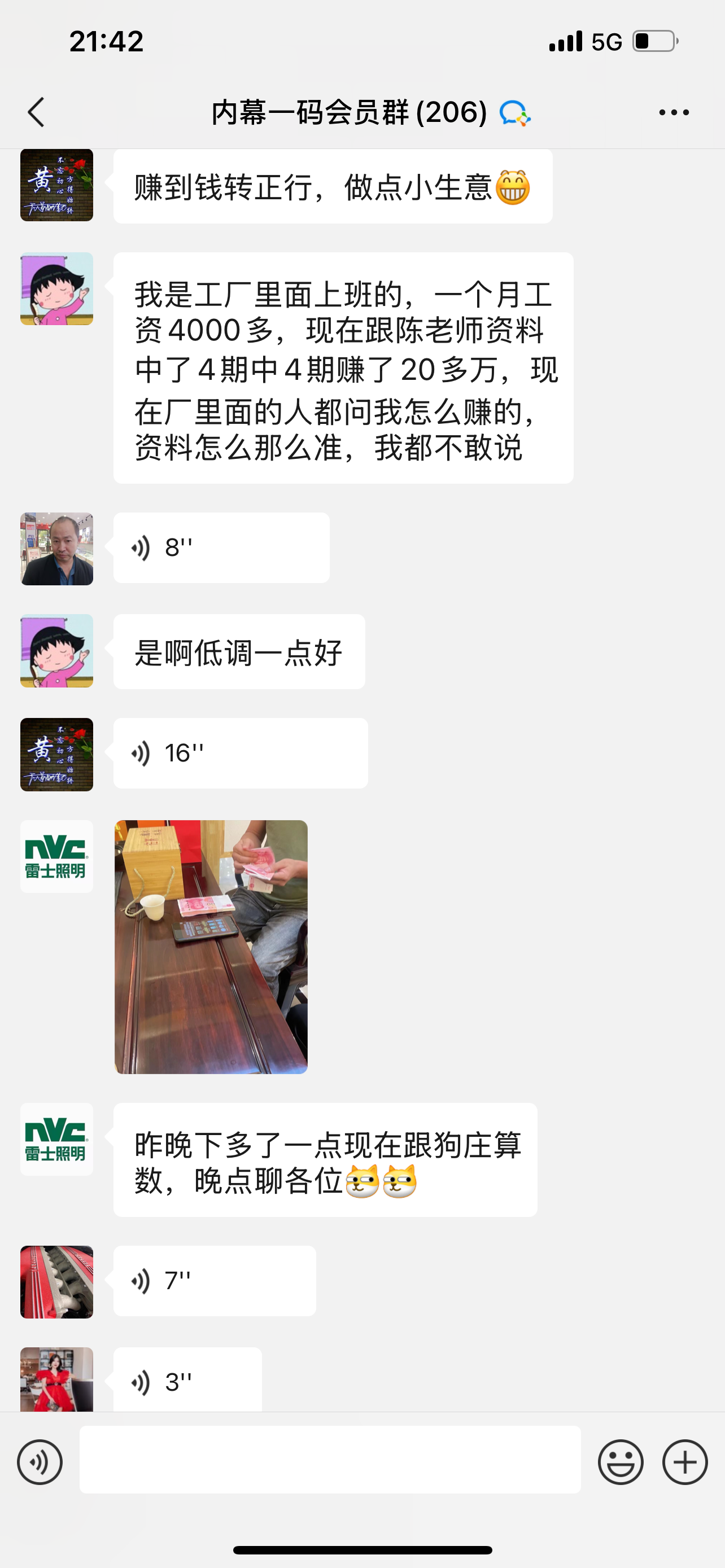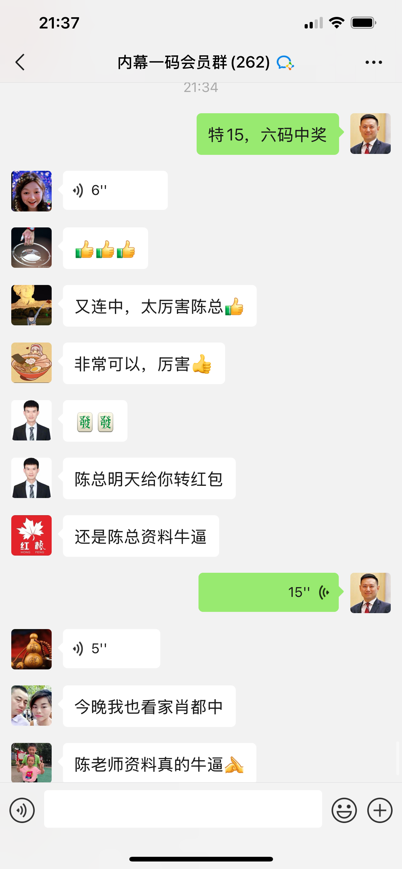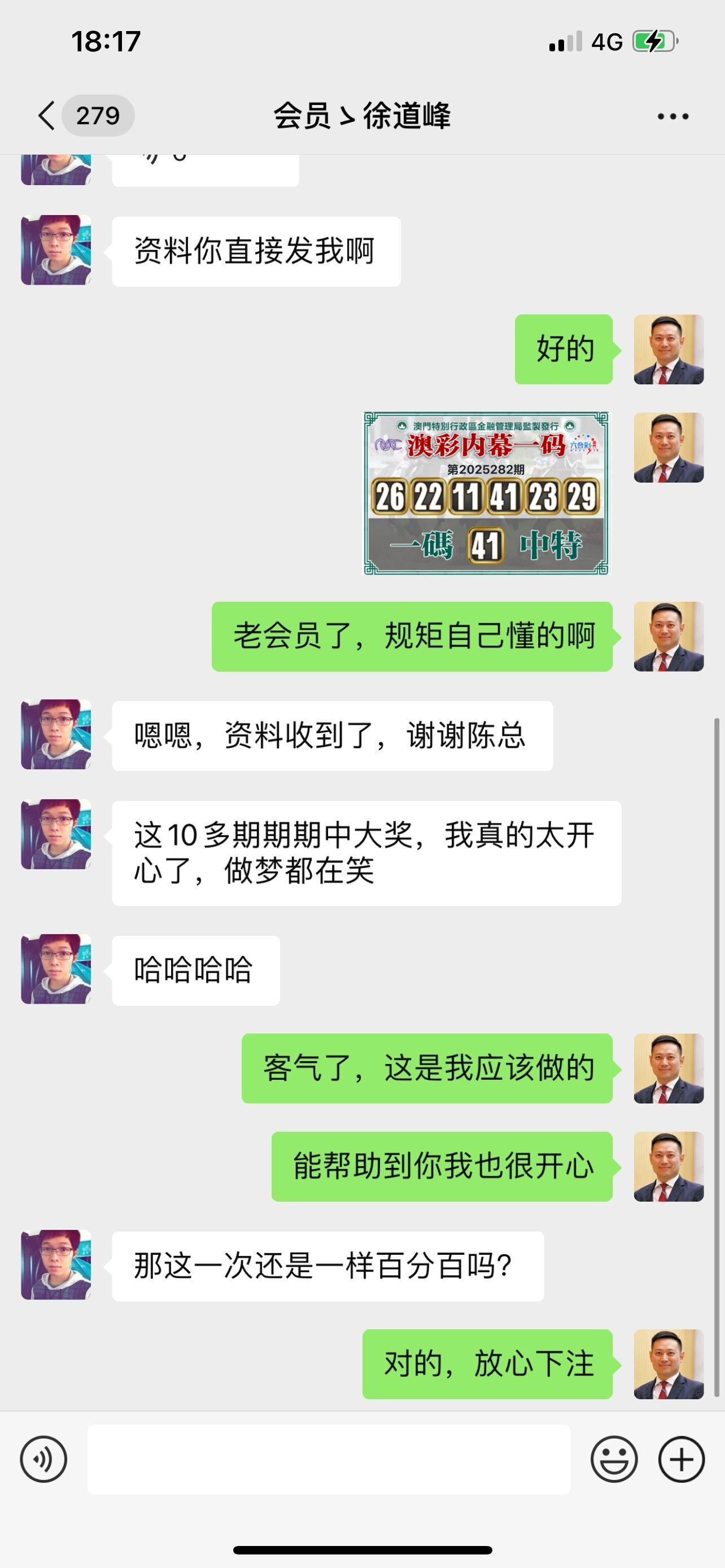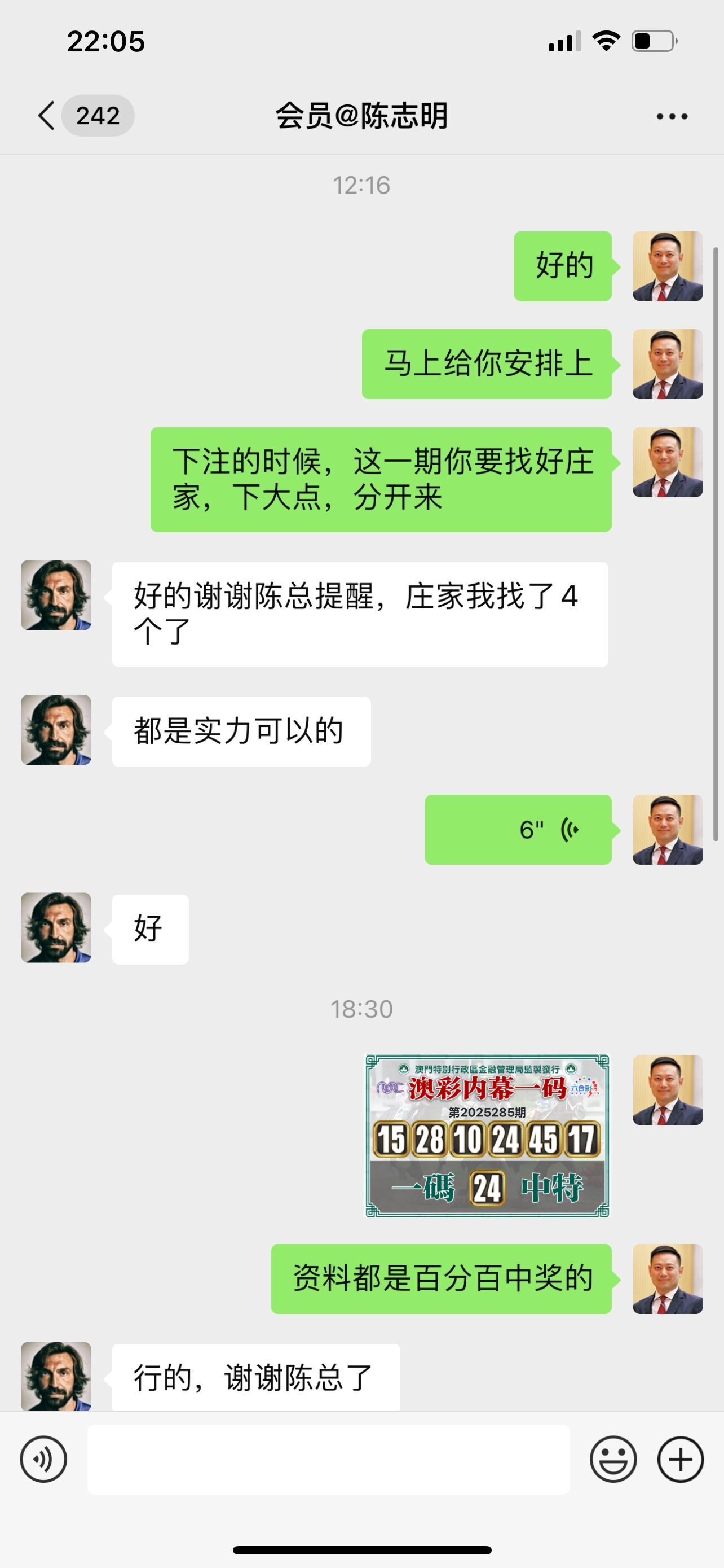 陈总你的资料太准了,昨晚中的钱刚从庄家那里拿回来,没找你之前输了十几万了,昨晚总算中回来一点了,以后就跟着你赚钱了。红包少不了你的,等我还清债务就发大红包感谢陈总!