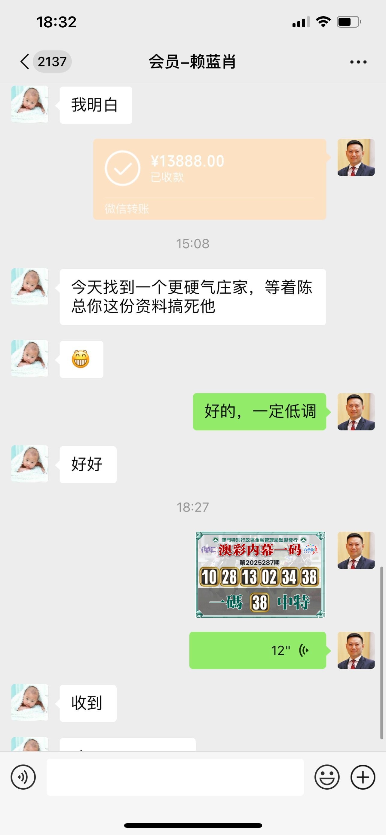 感谢陈总给予的一切,让我一个打工仔也能买的起这么贵的车,我给你转了一个28888的红包,钱不是很多,希望你不要介意,后期我只能看看有那个朋友合适的我介绍过来加入你的会员,也算是对陈总事业上的一点点支持,祝愿 澳彩内幕一码以后的路越走越远,帮助更多需要帮助的苦难彩民,谢谢。